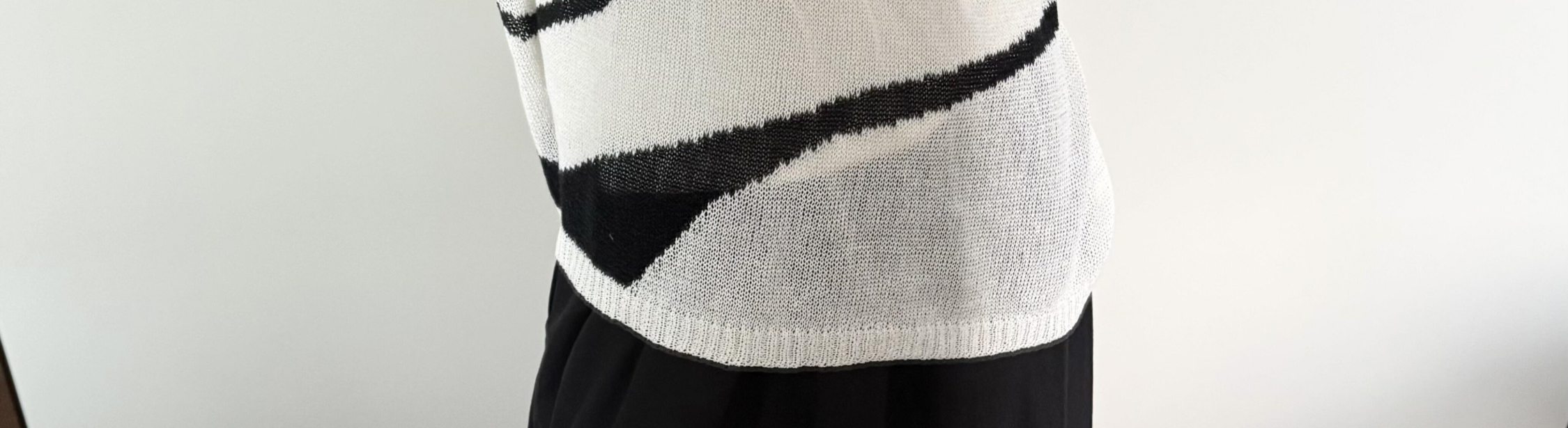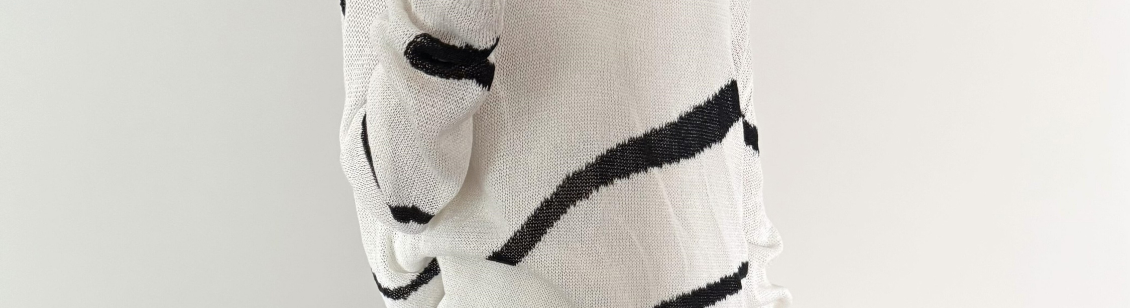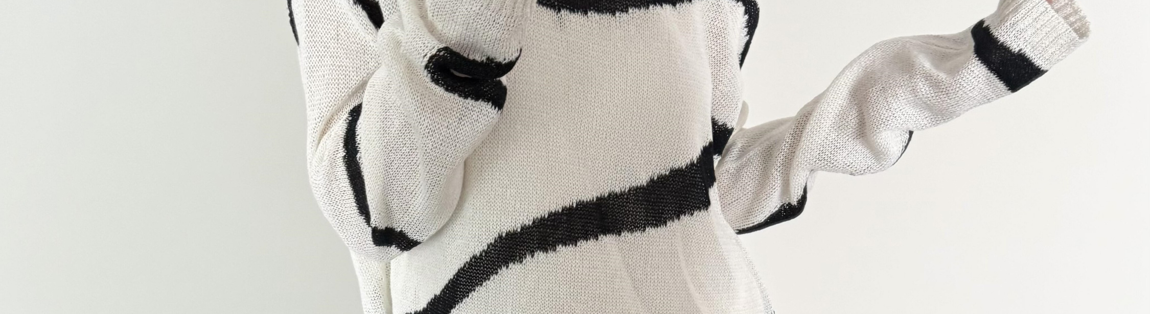 Striped knit top with off-shoulder design. Loose fit, casual and comfy for autumn wear.