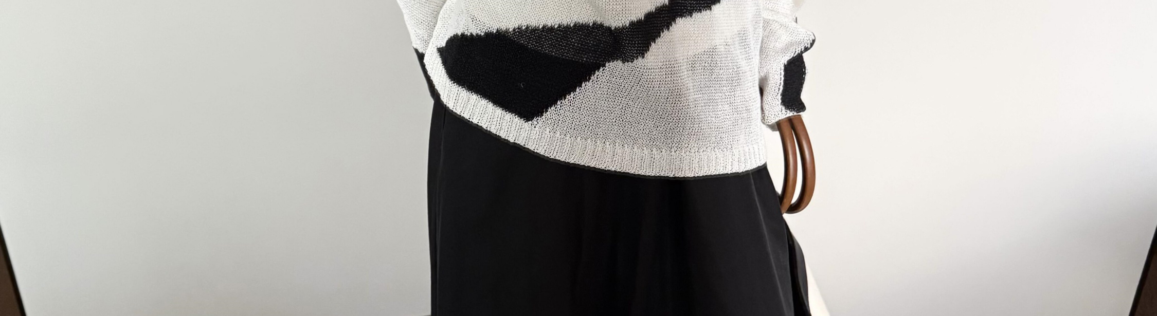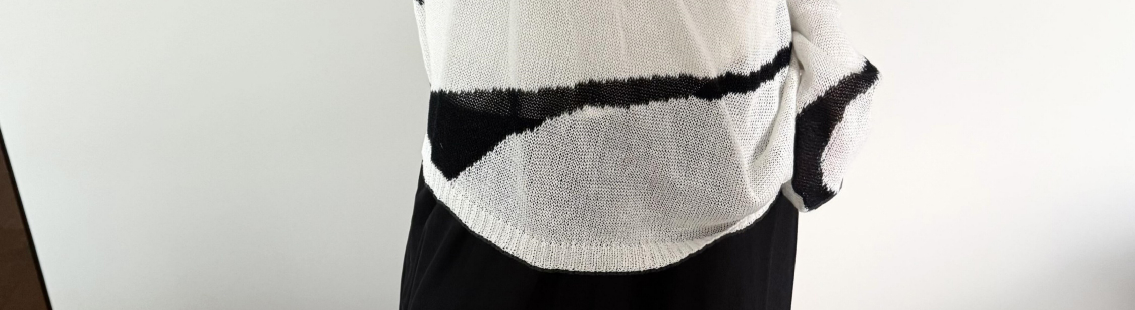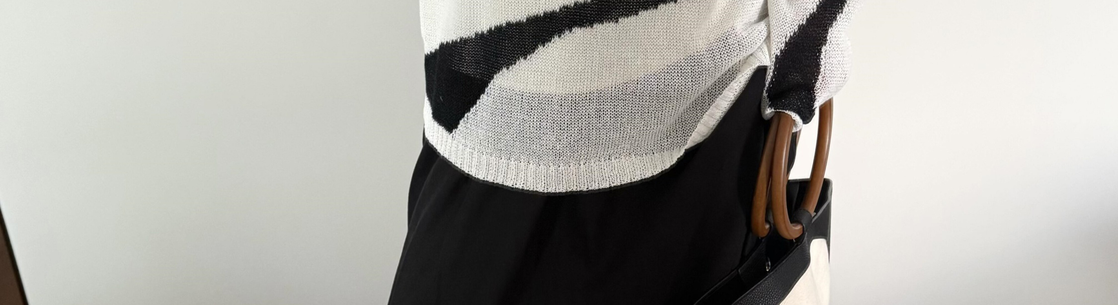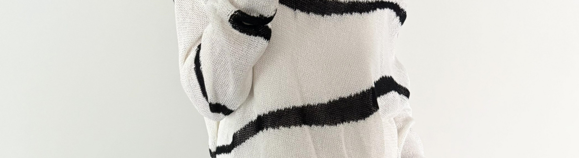 Striped knit top with off-shoulder design. Loose fit, casual and comfy for autumn wear.