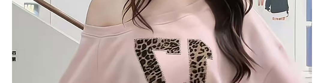 Pink Leopard Off Shoulder Patch Sweatshirt