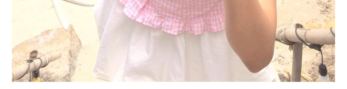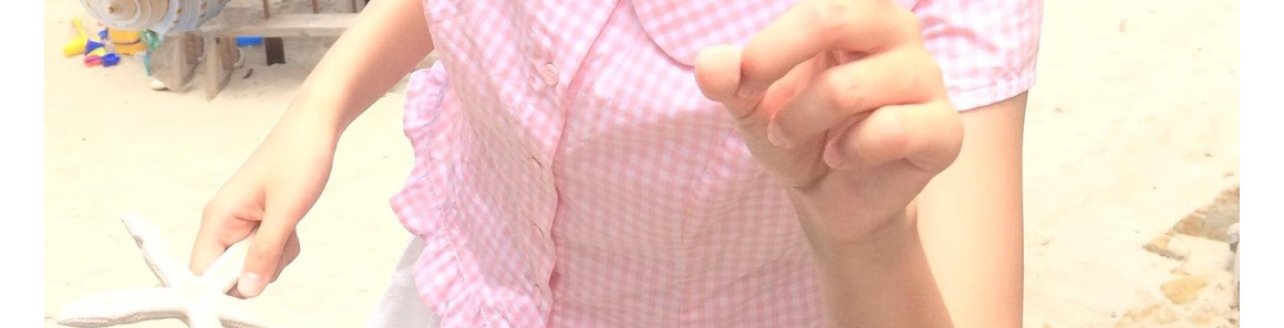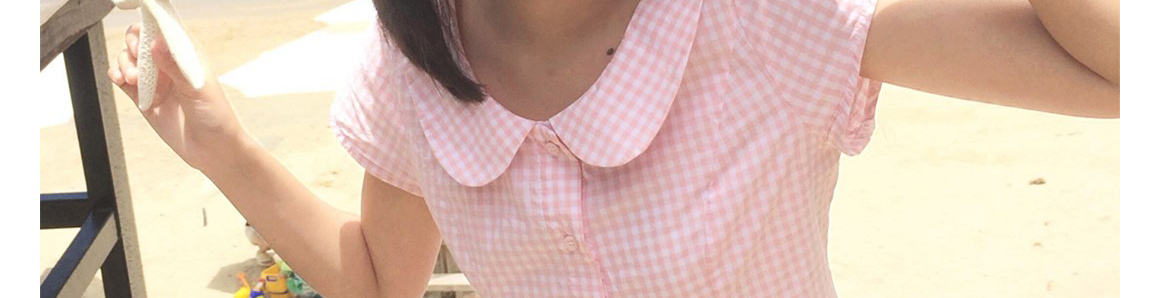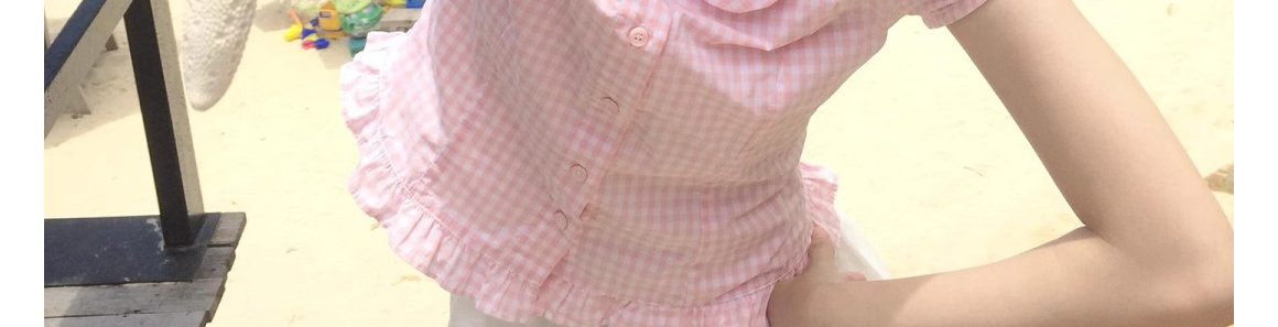 - Top: Short sleeve pink polo shirt with waist definition, slim-fit summer fabric, chic French-inspired design.