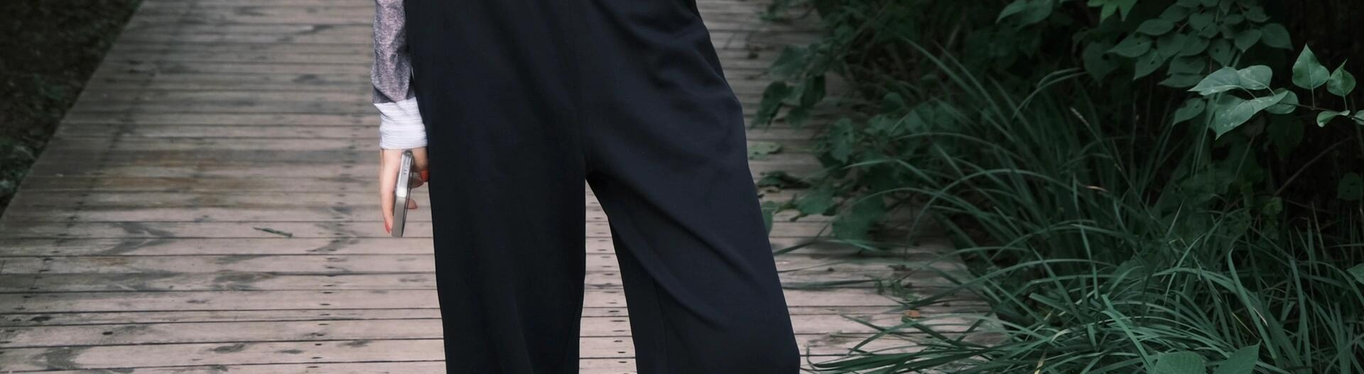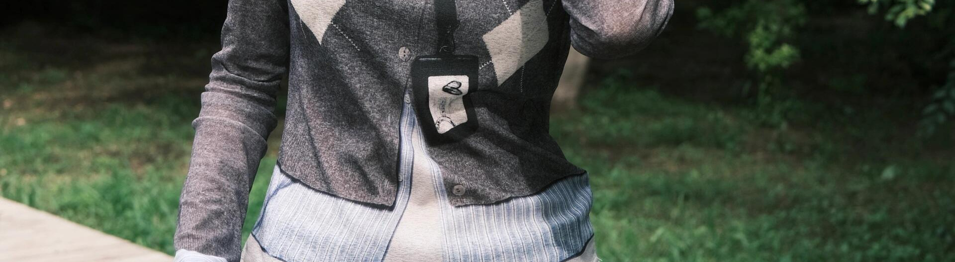 - Top: Slim-fit long sleeve tee with diamond pattern and layered design, soft autumn fabric.