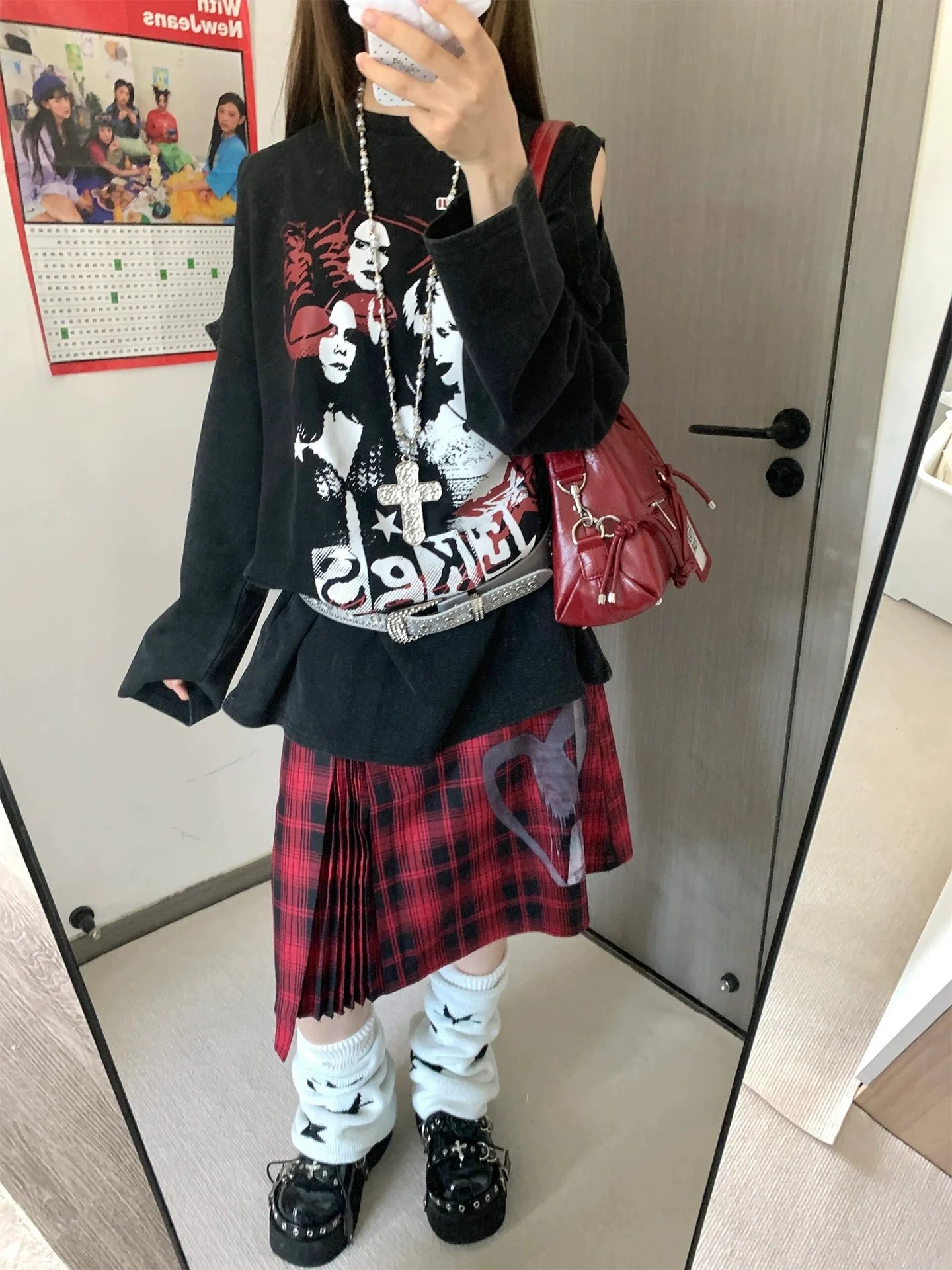 Punk Washed Convertible Long Sleeve Tee Detachable Tank Top Design