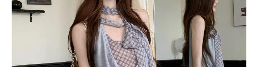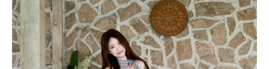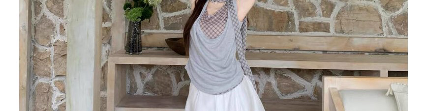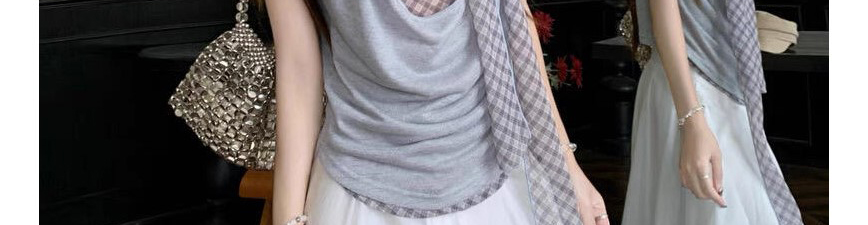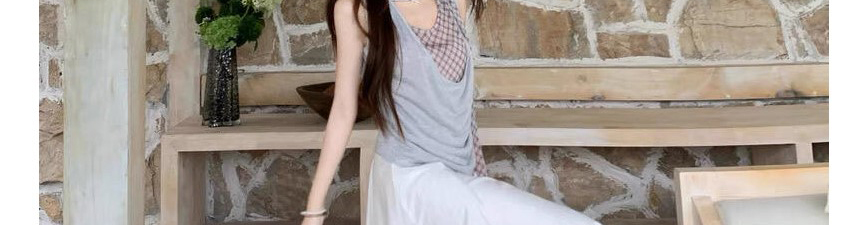- Top: Sleeveless tank top with layered checked design, loose fit and airy fabric for summer vacation wear.