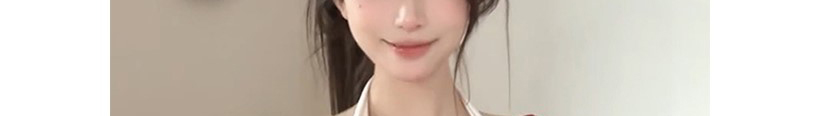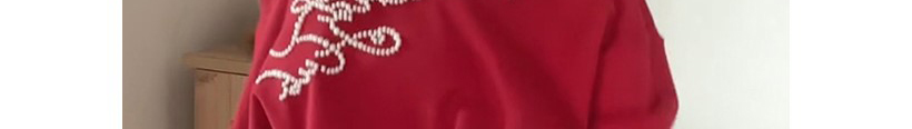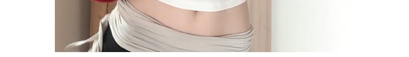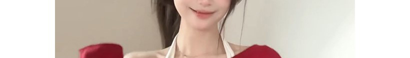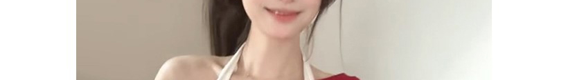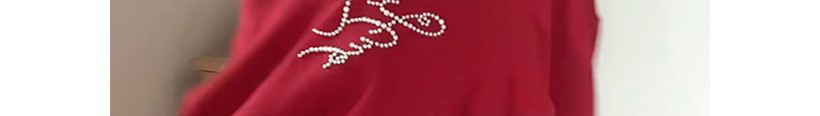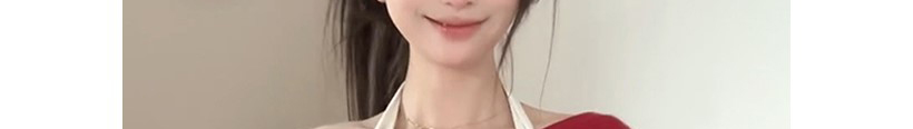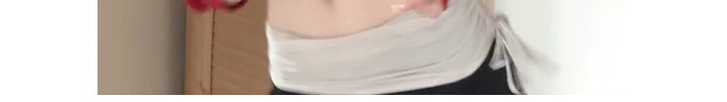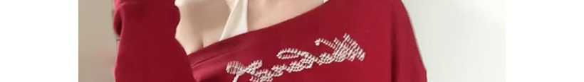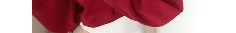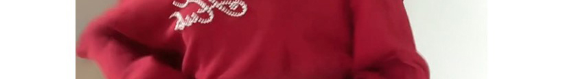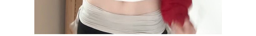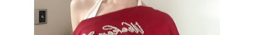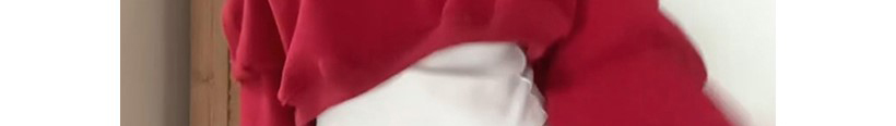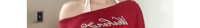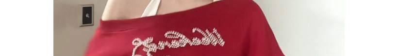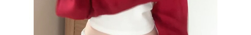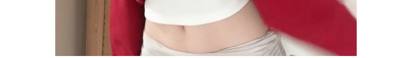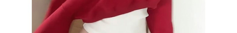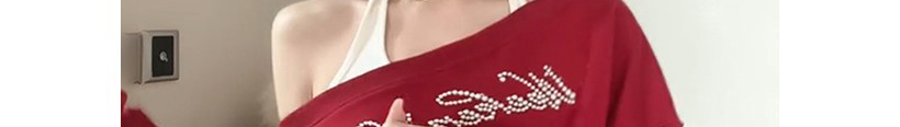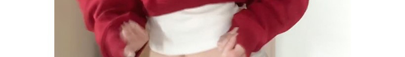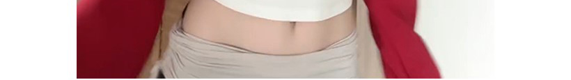 - Top: Cropped red asymmetrical sweatshirt with white tank top, loose early autumn fabric.