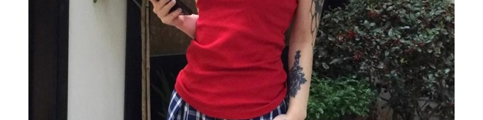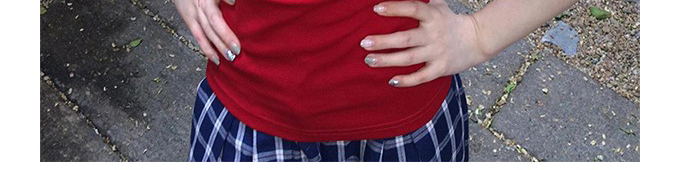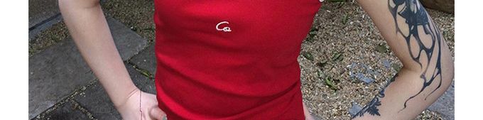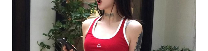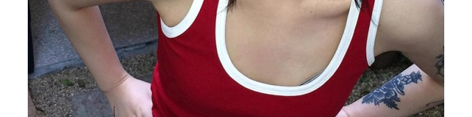 - Top: Simple racerback cami top with red embroidery and soft stretch fit for everyday wear.
