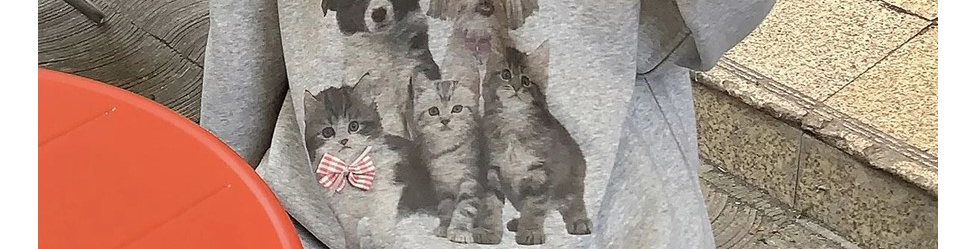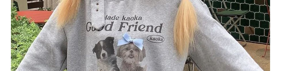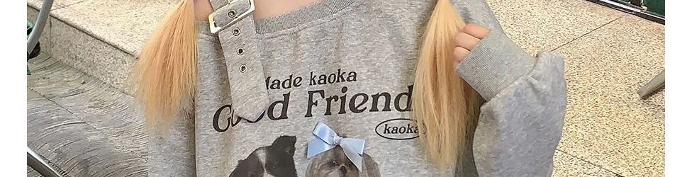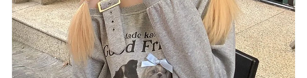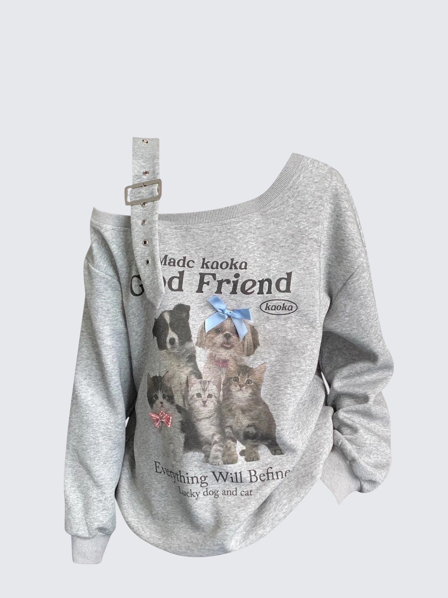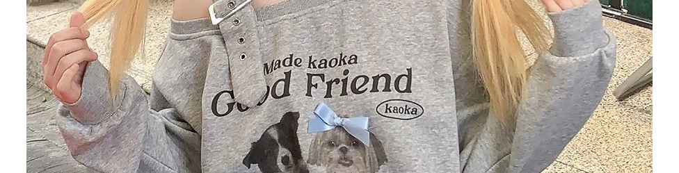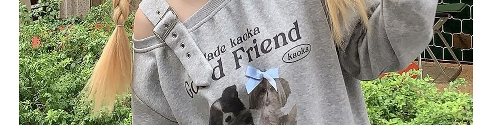 - Top: Cute dog print sweatshirt with off-shoulder neckline and relaxed oversized fit.
