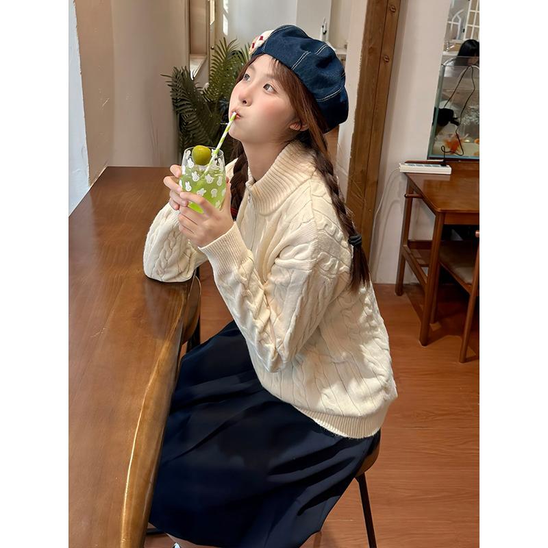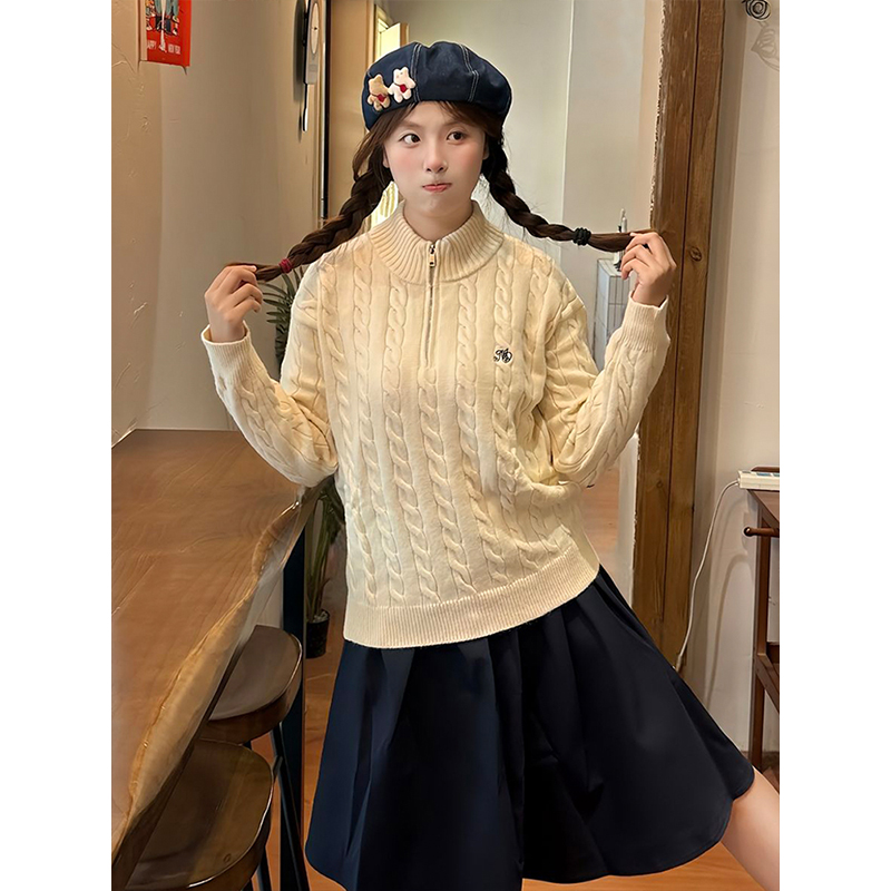 Half-zip cable knit sweater in a cozy texture. Vintage American aesthetic with a relaxed and comfy silhouette.