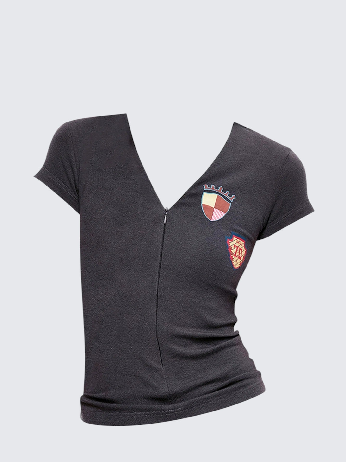 Retro Zip V-Neck Sport Short Sleeve Top