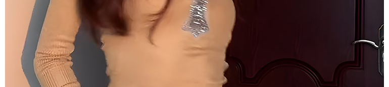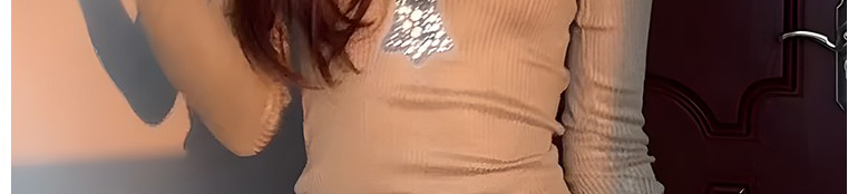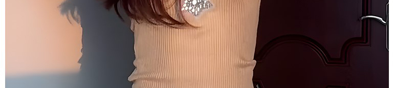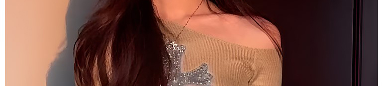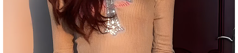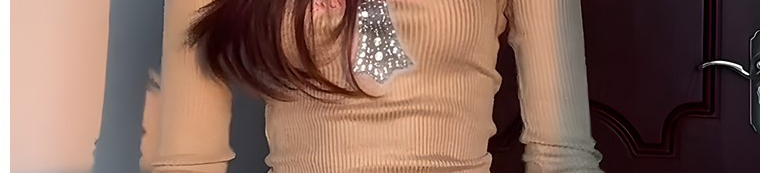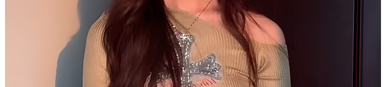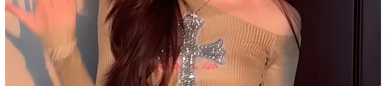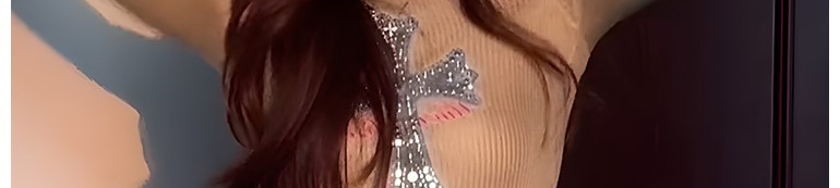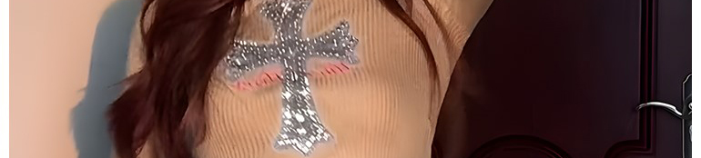- Top: Slim-fit cropped knit top with rhinestone print, diagonal shoulder design, soft spring fabric.