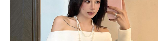 Asymmetric off-shoulder sweatshirt in relaxed Korean style. Loose fit for a laid-back and flattering silhouette.