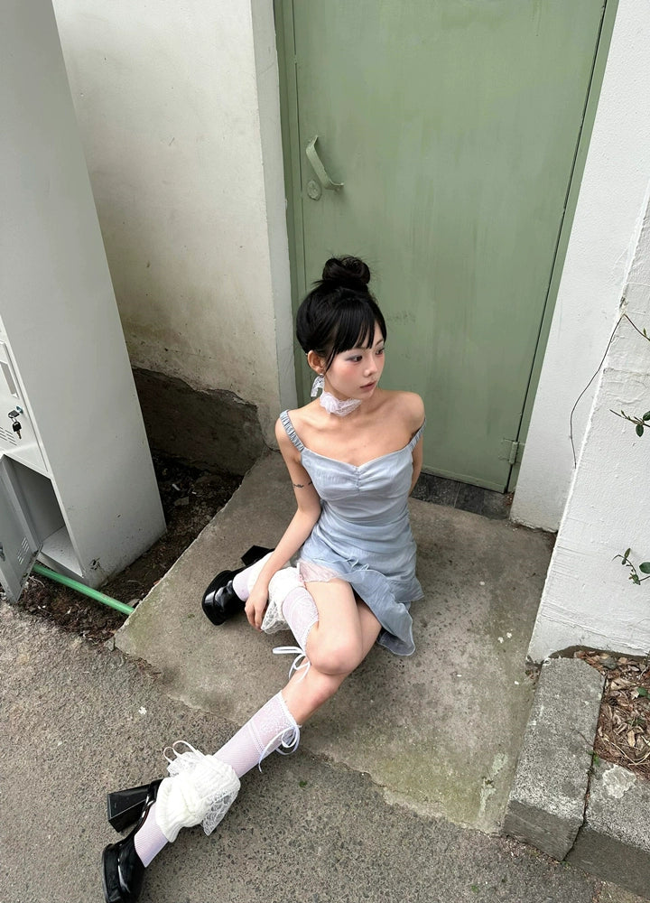Soft Vibe Sheer Satin Off-The-Shoulder Ruffled Asymmetrical Hot Girl Summer Mini Dress