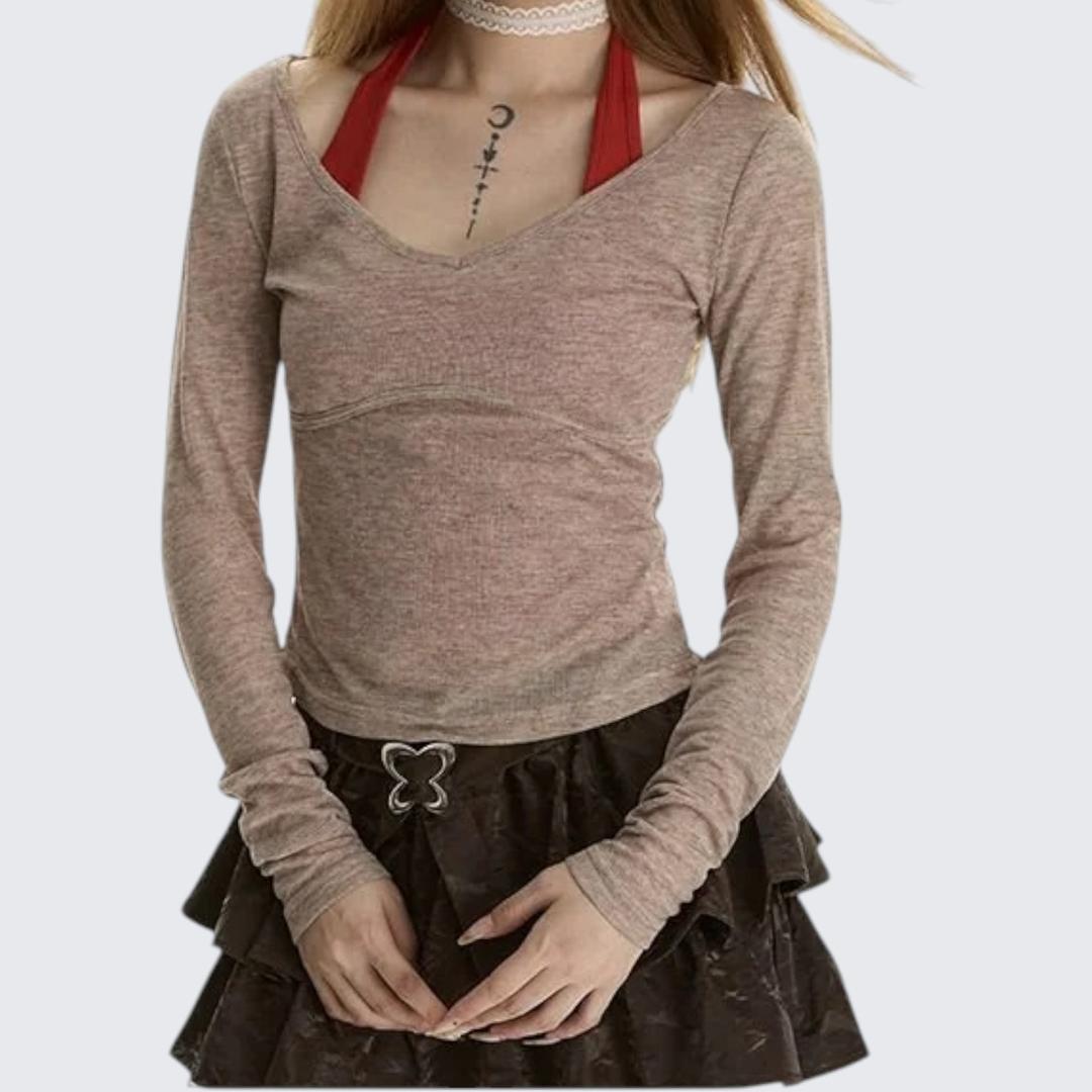 - Two-Piece Set: Sweet & cool spicy girl set with blue long-sleeve base shirt + hanging neck small suspender vest. Lightweight for spring/summer, versatile to mix or wear together.