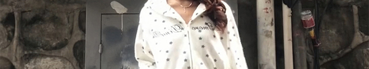 Retro heavy zip hoodie with full star print. Oversized American casual style for early fall outfits.