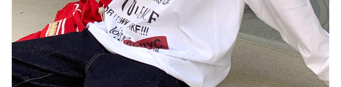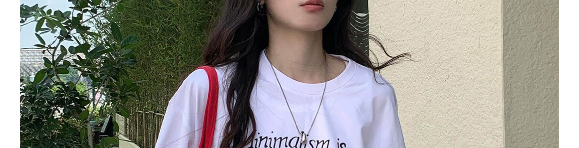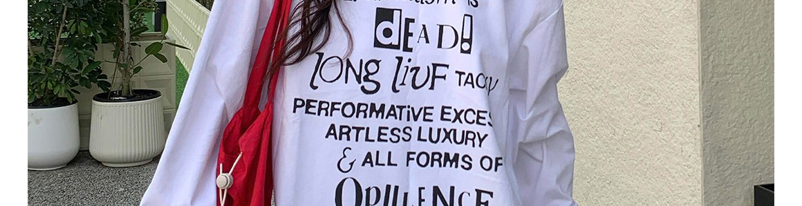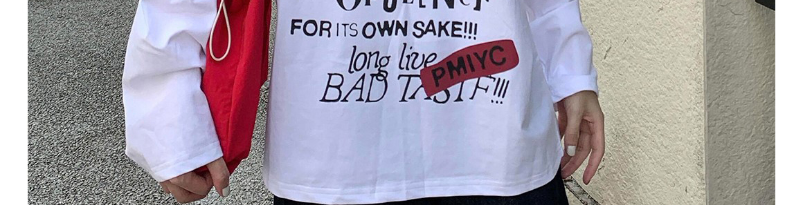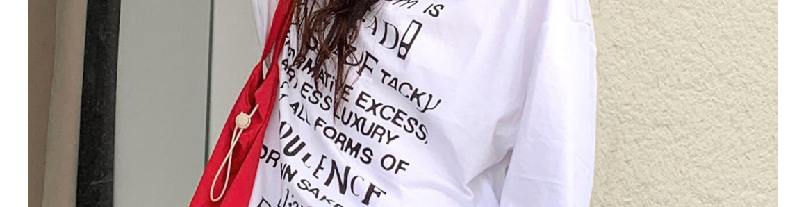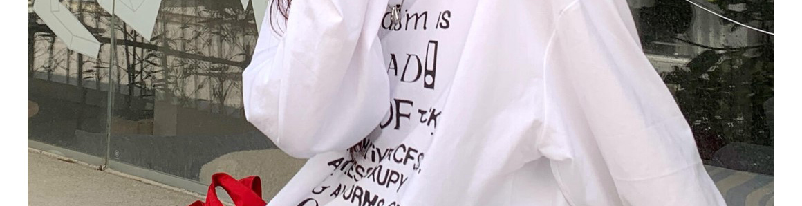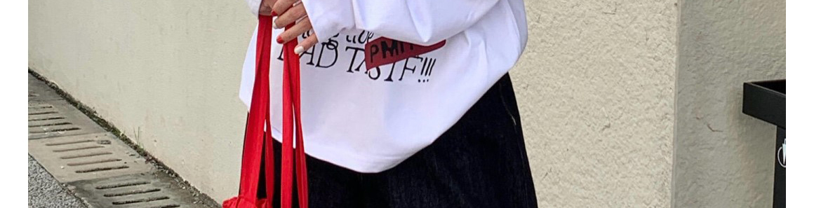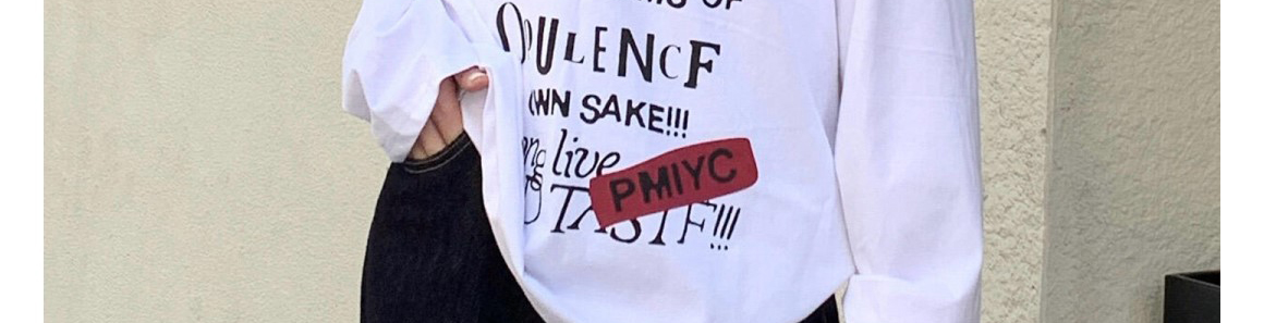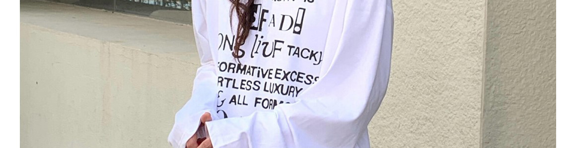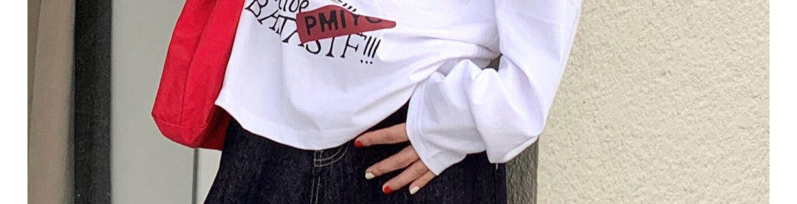 - Top: Loose-fit long sleeve tee with letter print, soft autumn cotton fabric, round neckline.