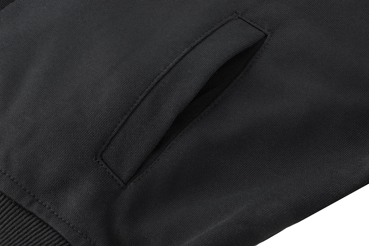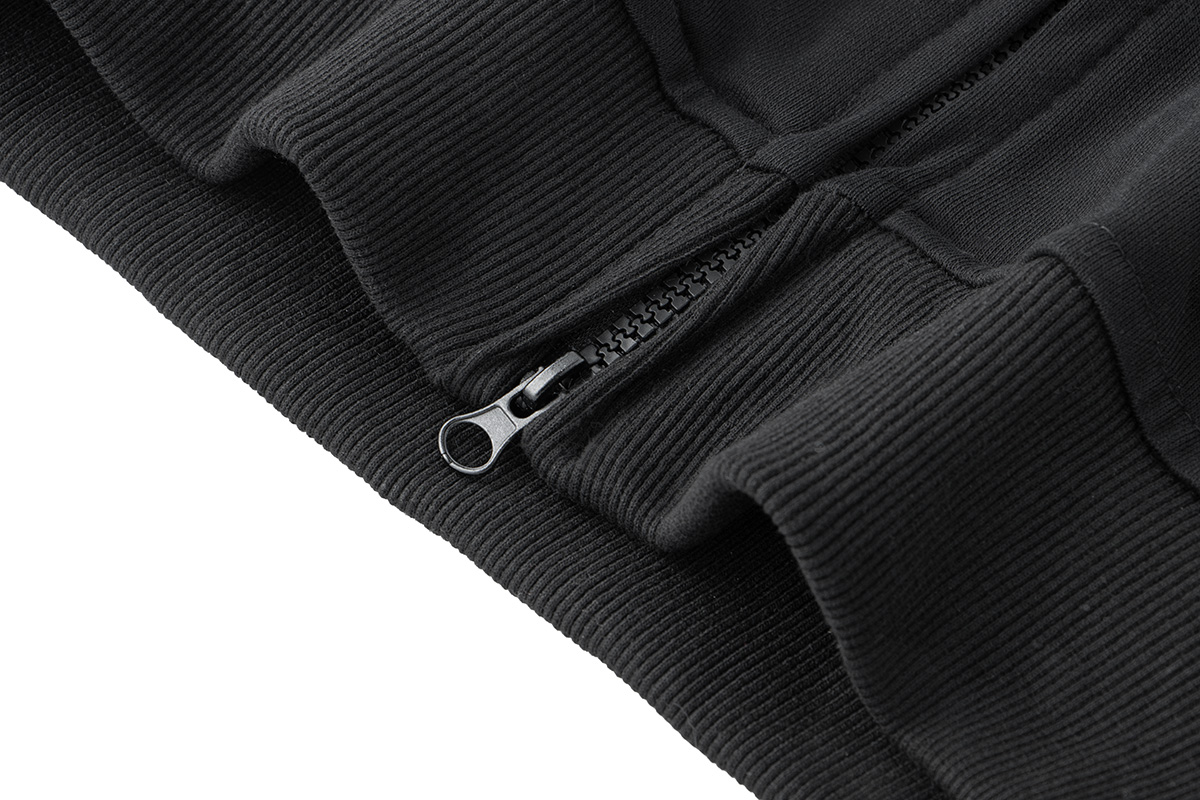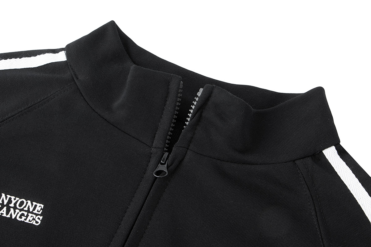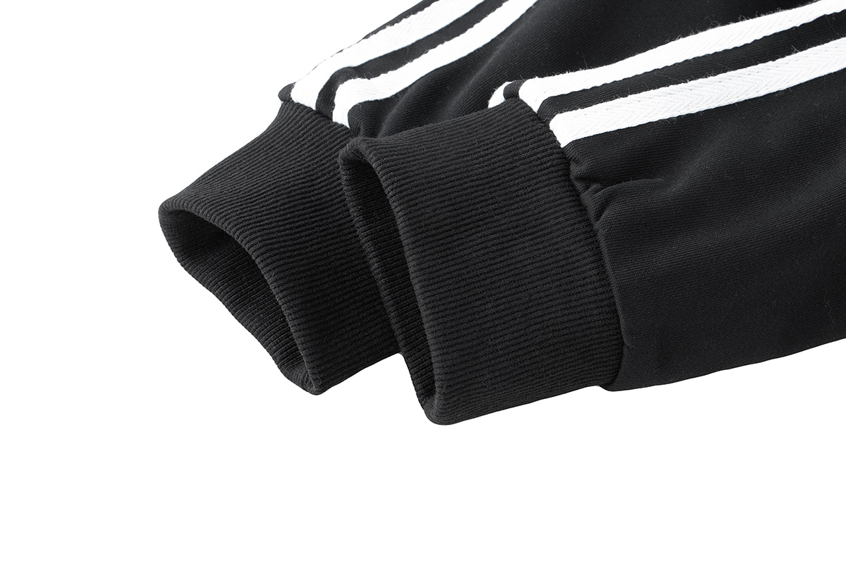 - Jacket: Double-zip cropped sweatshirt jacket with side stripes and high collar for a sporty chic vibe.