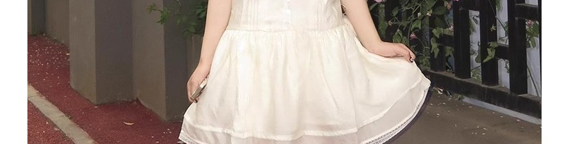 - Dress: Sleeveless summer dress with sailor collar, bow tie, and flared silhouette, lightweight fabric.