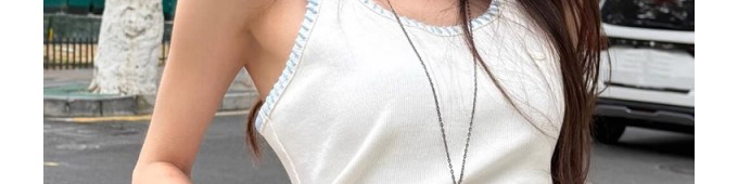 - Top: Slim-fit sleeveless knit tank with colorblock design, soft summer fabric, versatile style.