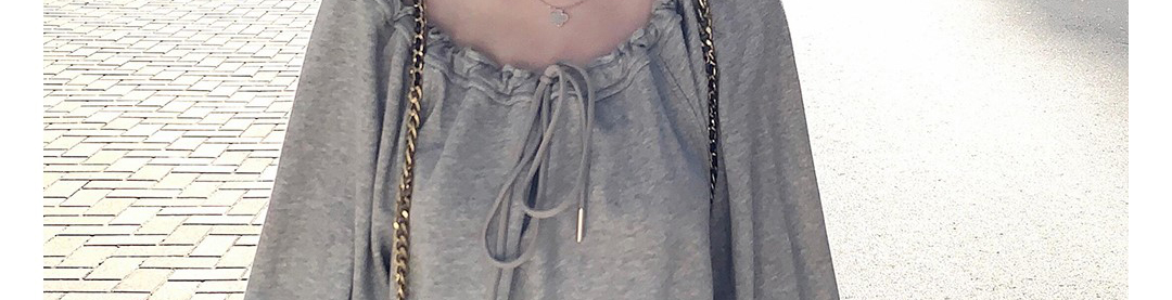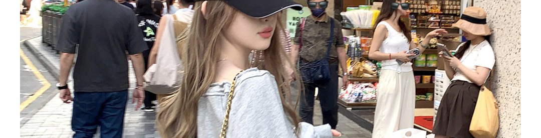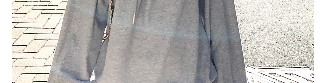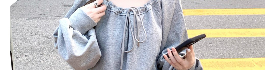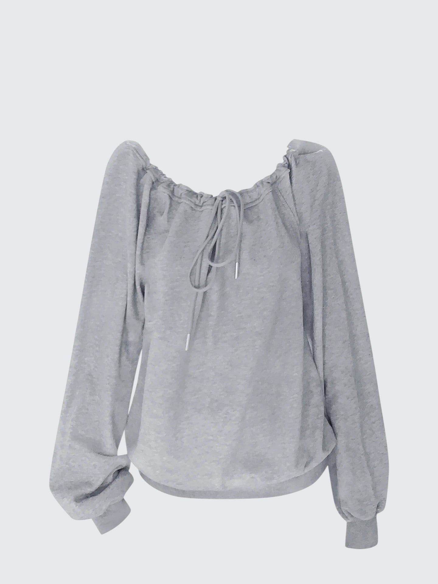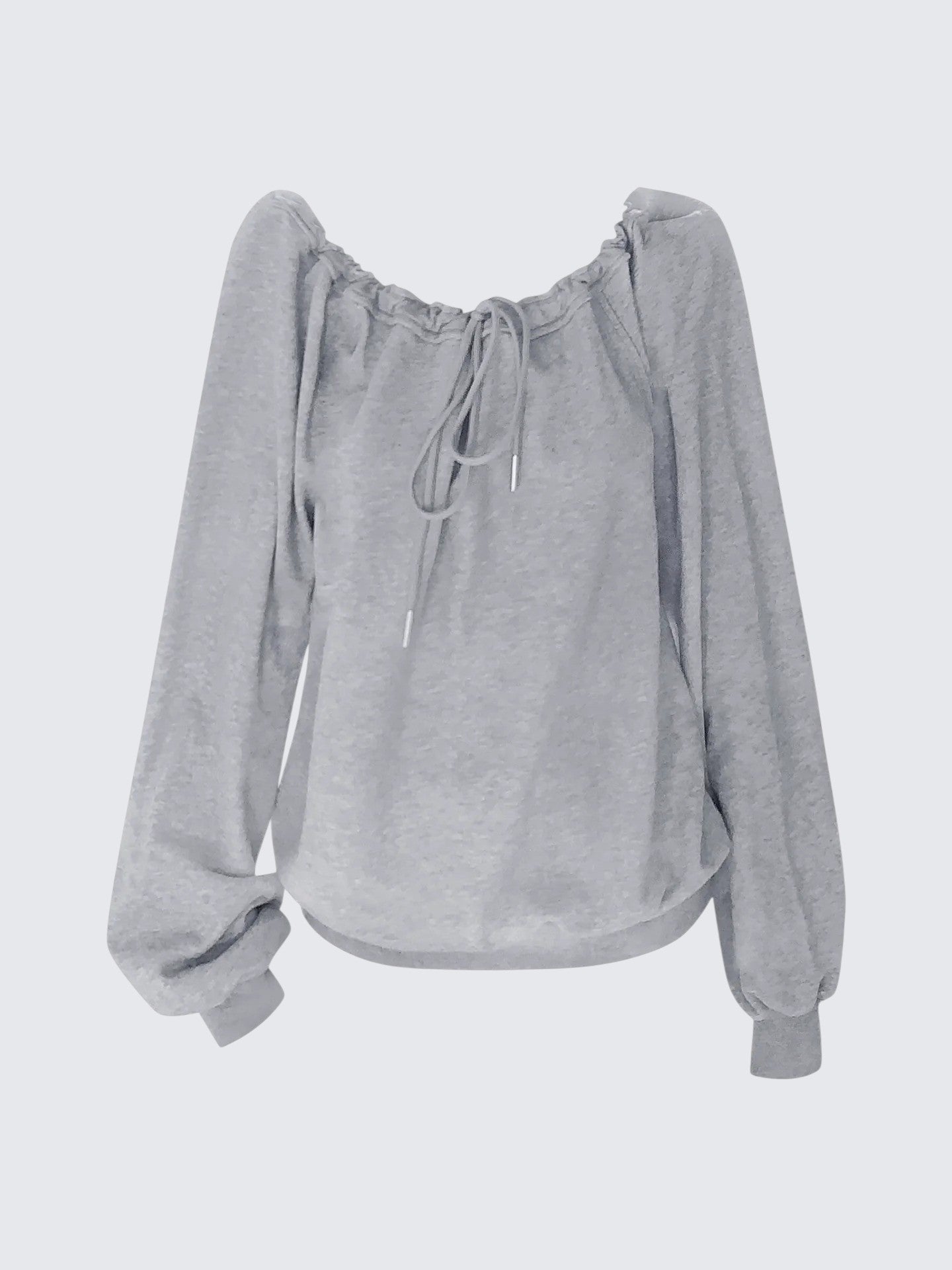 - Top: Loose-fit long-sleeve hoodie with adjustable off-shoulder design, soft autumn fabric, cozy casual style.