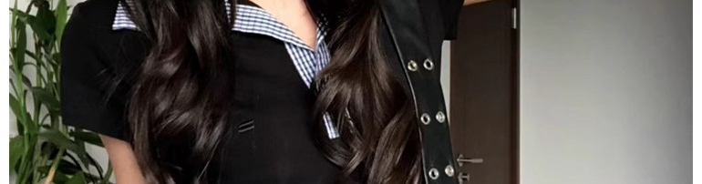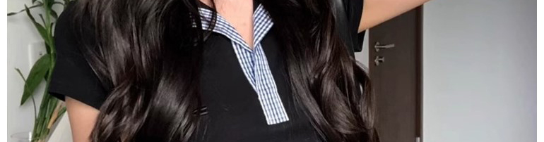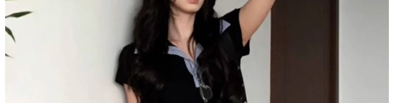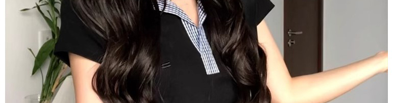 - Top: Short sleeve polo top with checkered patchwork and slim fit, lightweight summer fabric.