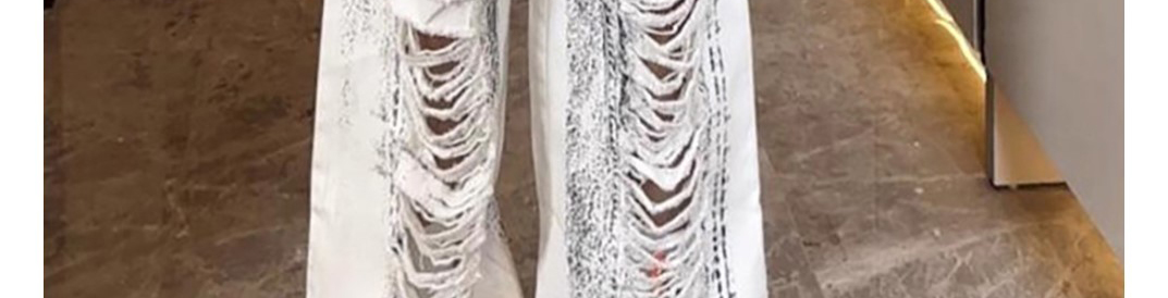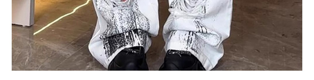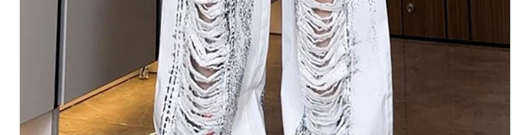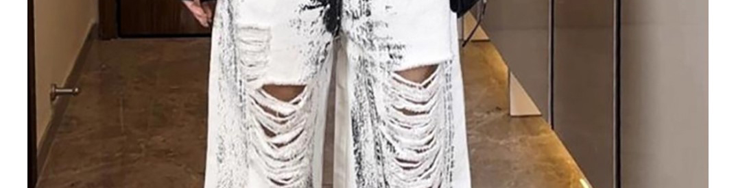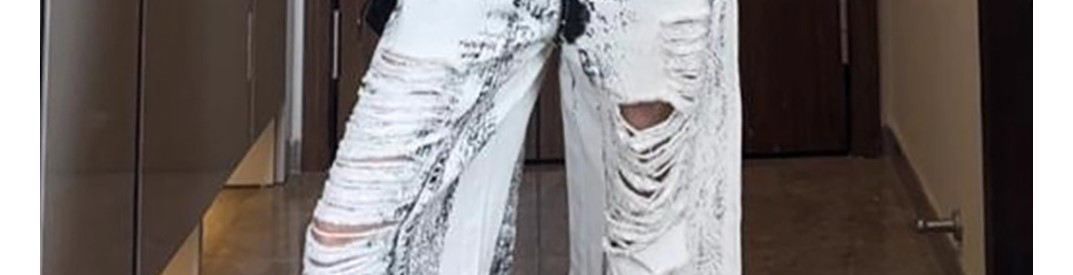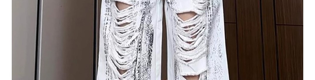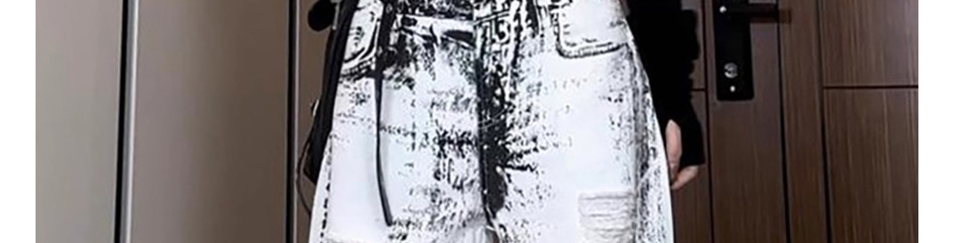 - Pants: High-waist loose-fit straight jeans with tie-dye and distressed details, soft summer denim.