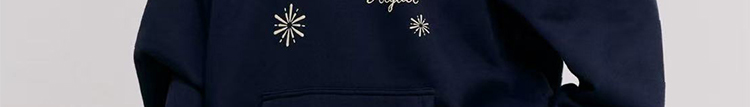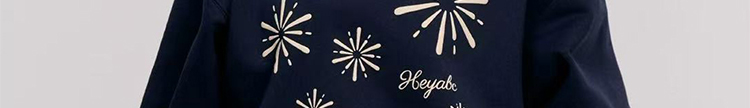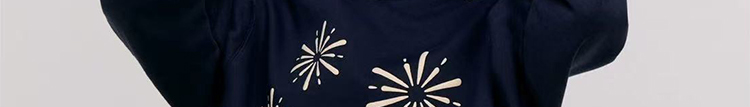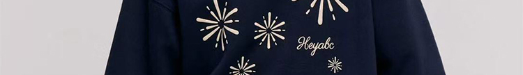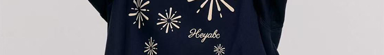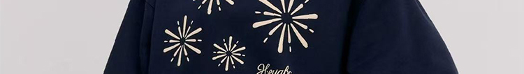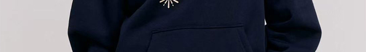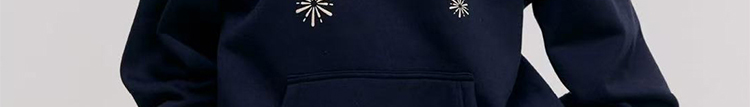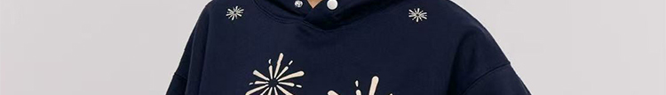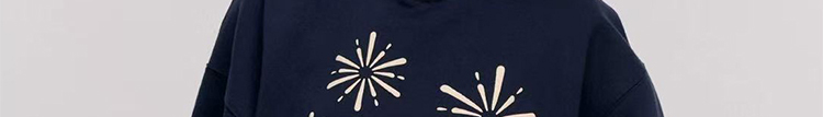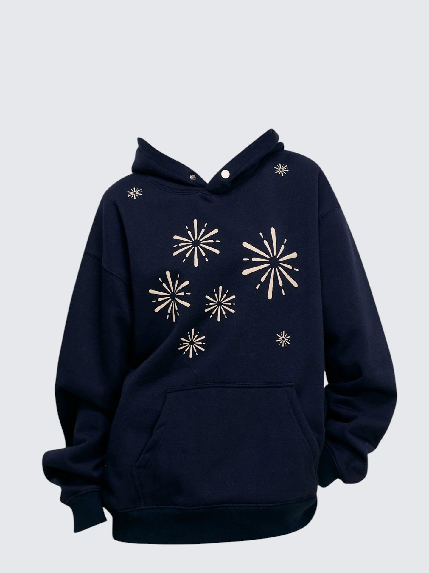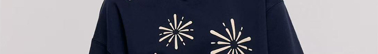 - Top: Oversized navy hoodie with firework print, heavyweight autumn fabric, cozy and relaxed fit.