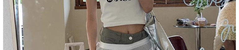 - Pants: Wide-leg straight cargo pants with lace panel detailing, loose-fit spring fabric, casual vintage style.