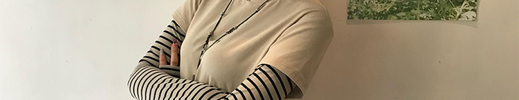 - Top: Slim-fit long sleeve top with striped patchwork layered design, soft autumn fabric, retro-inspired style.