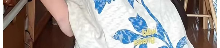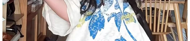 - Top: Loose-fit cotton-linen short sleeve tee with retro leaf print and distressed detailing, breathable summer fabric.