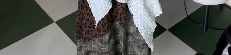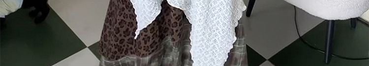 - Top: Long-sleeve knit top with leopard print buttons, slim fit and soft textured fabric for layering.