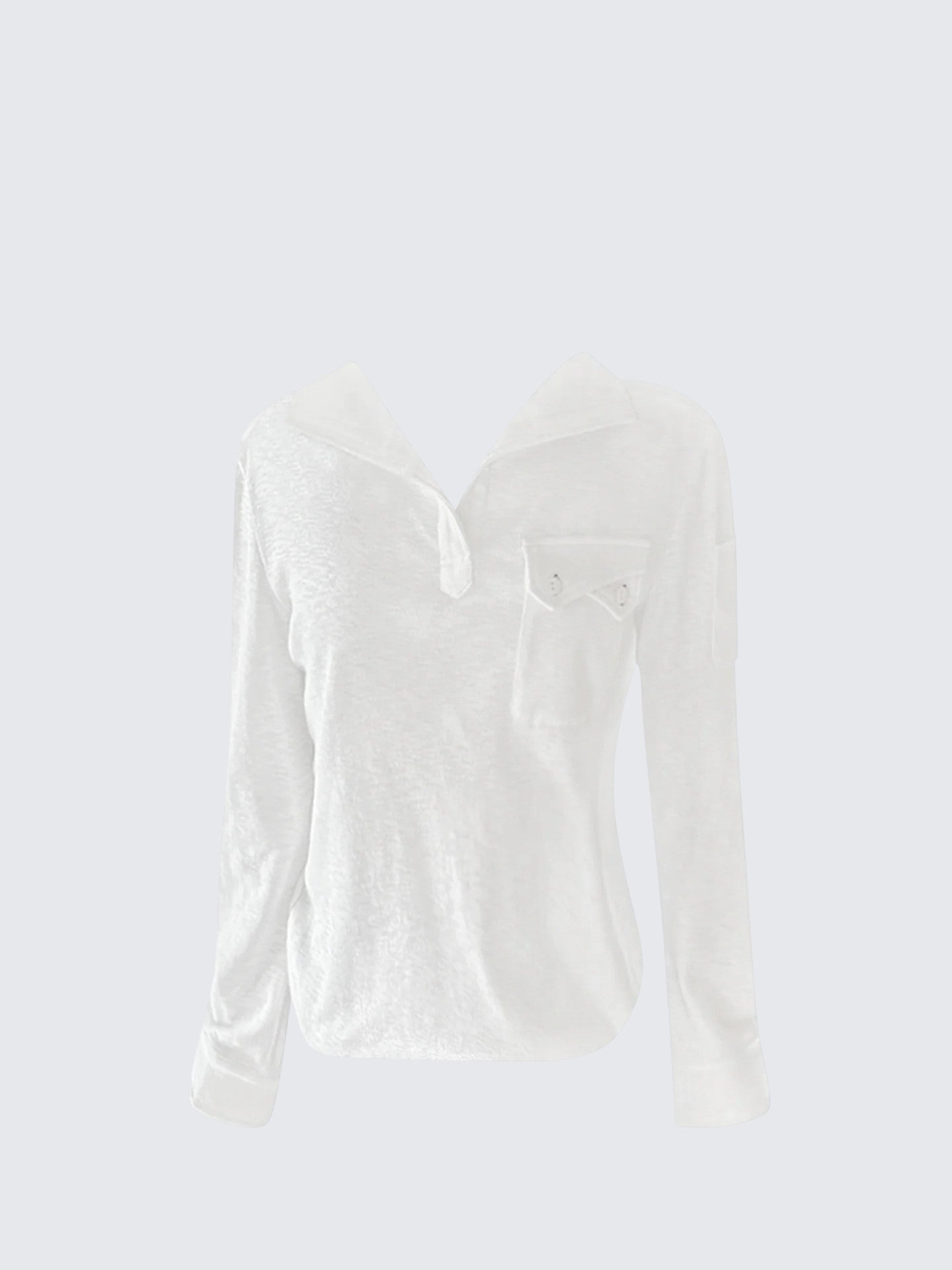 - Top: Retro long-sleeve polo tee with collar, relaxed fit, lightweight and breathable fabric.