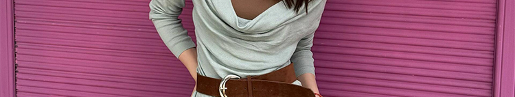 - Top: Long sleeve knit top with slouchy neckline and fitted waist, soft autumn fabric, relaxed fit.