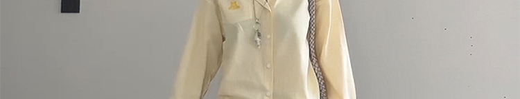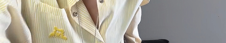 - Top: Loose-fit long-sleeve striped shirt with dog embroidery, soft autumn fabric, relaxed style.