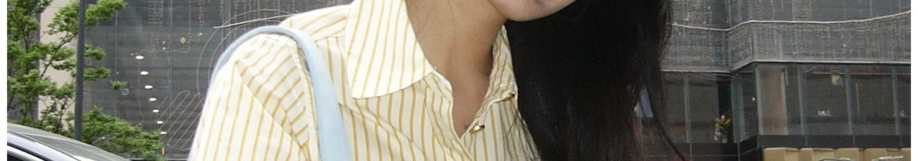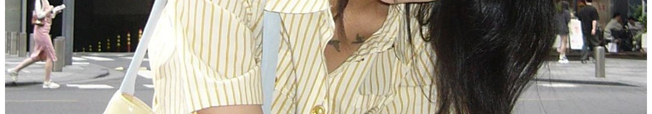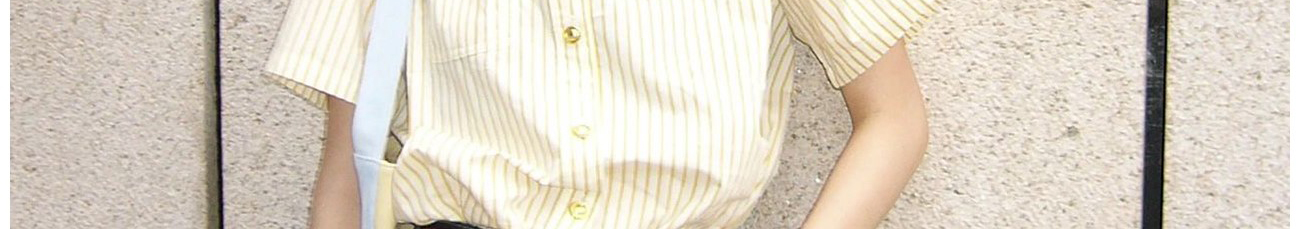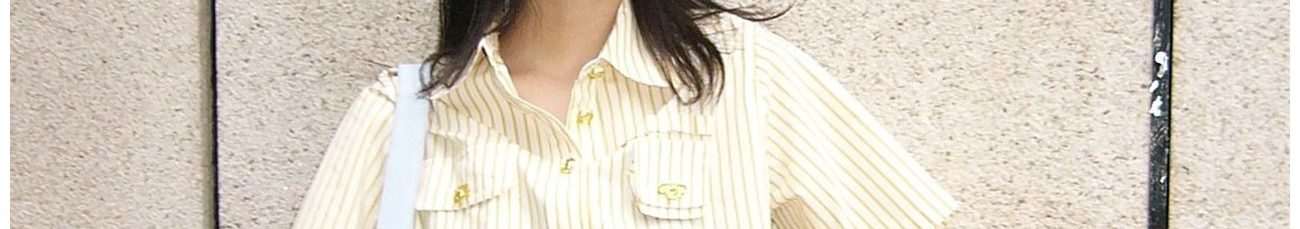 - Top: Summer short sleeve shirt with yellow stripes, relaxed fit, and unique vacation-inspired design.