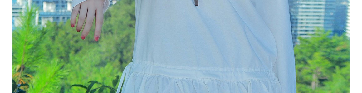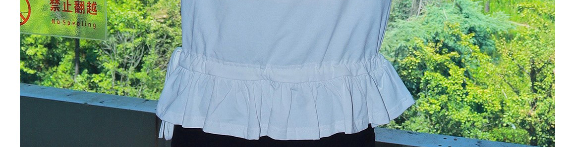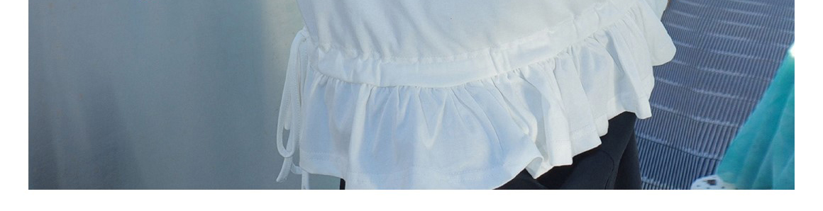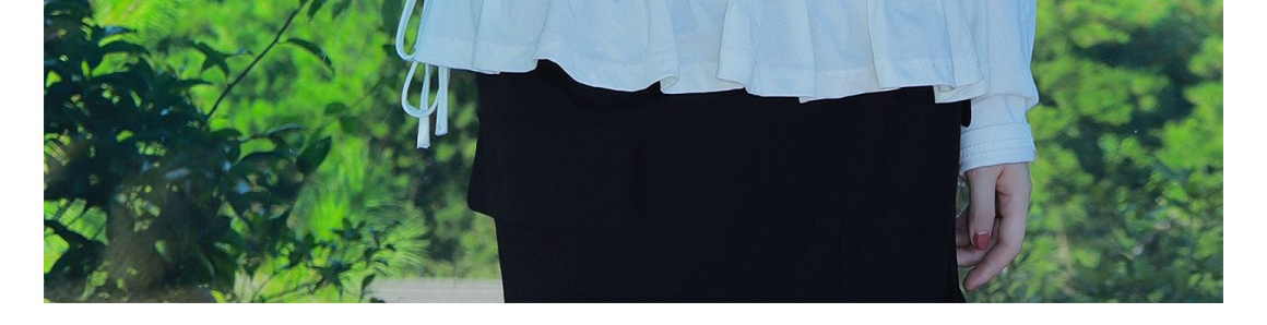 - Top: Loose-fit long sleeve tee with embroidery, ruched and ruffle details, autumn casual fabric.