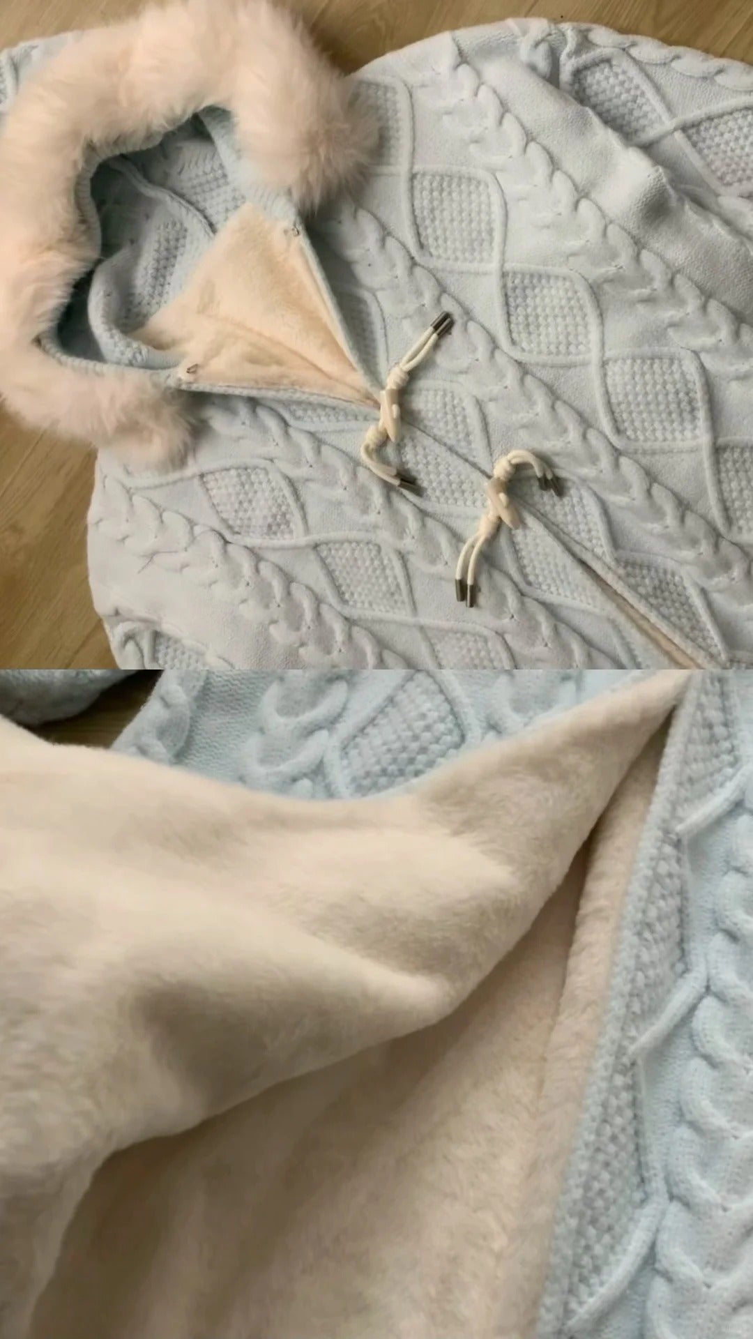 - Outerwear: Light blue long cardigan with faux-fur collar for Y2K-inspired layering.