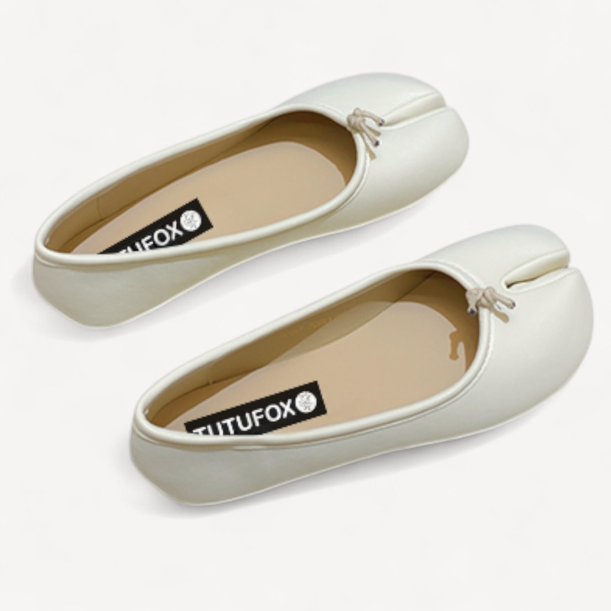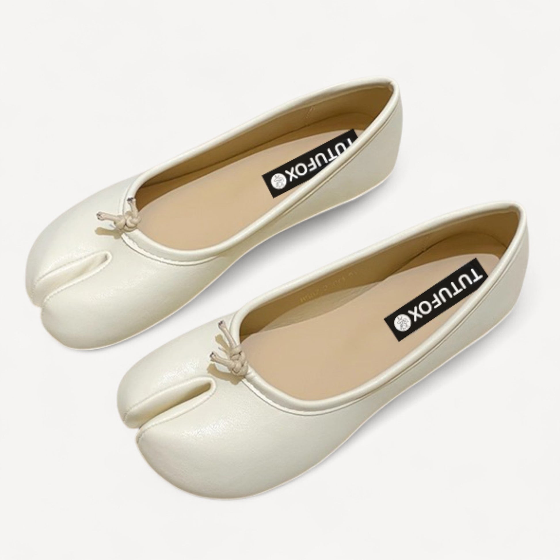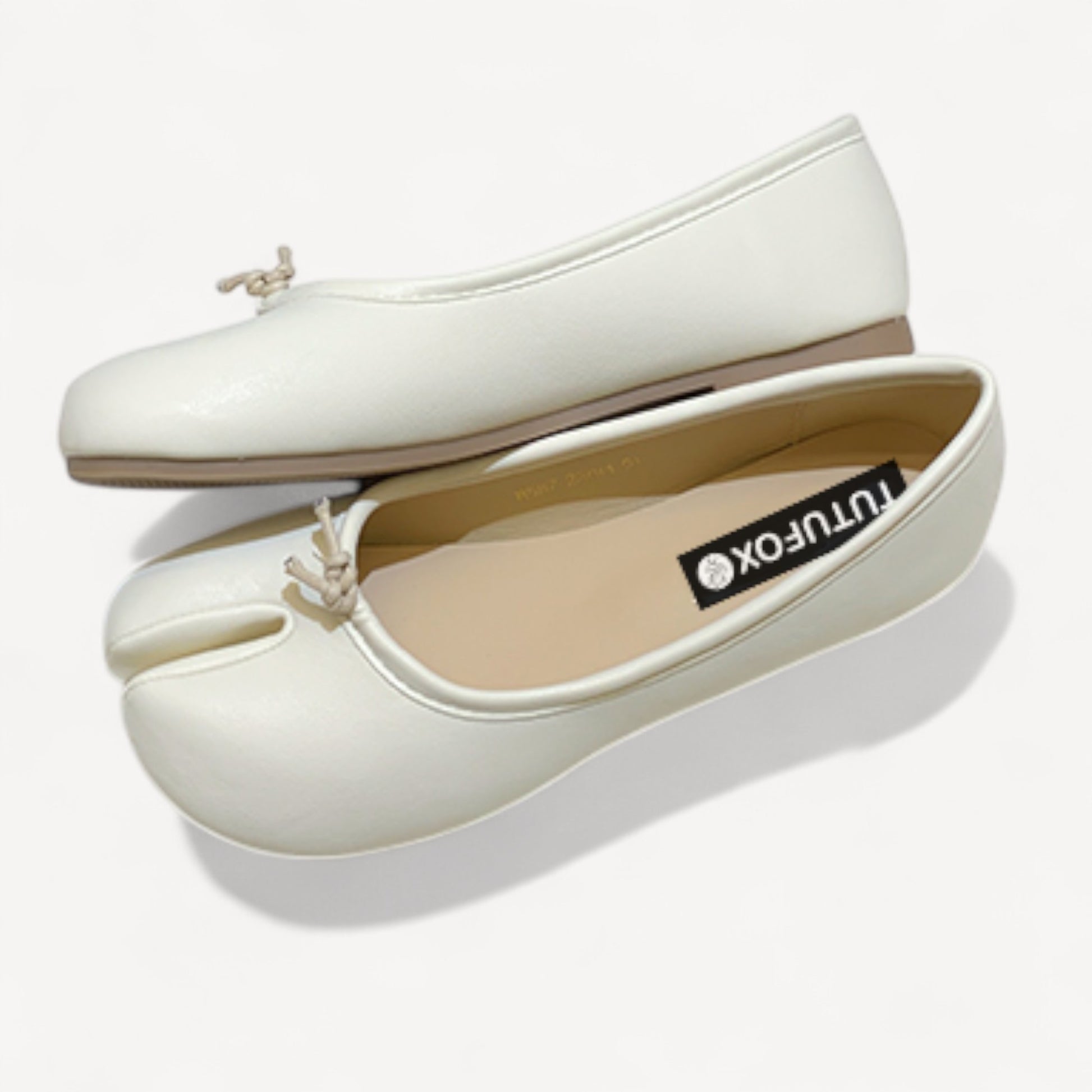White Soft Leather Round-Toe Split-Toe Flats Tabi