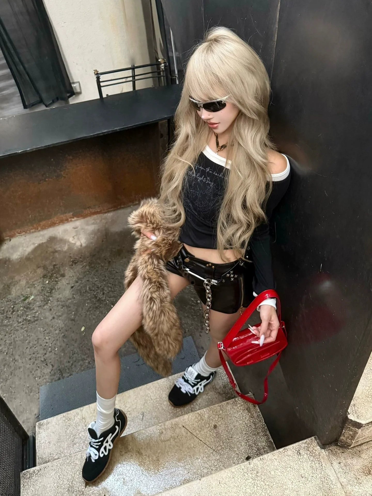 - Look: Perfect for streetwear layering, casual Y2K styling, festival outfits, and punk layering.
