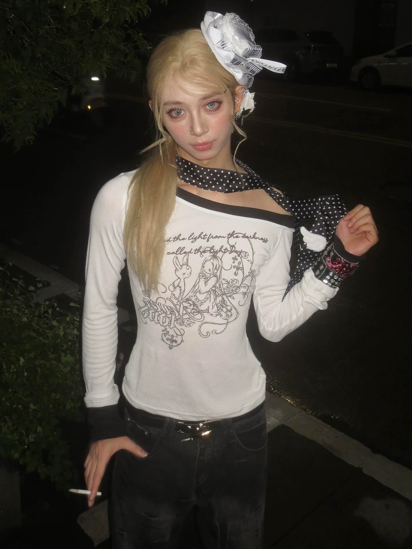 Y2K Light Shoulder Colorblock Long Sleeve Tee