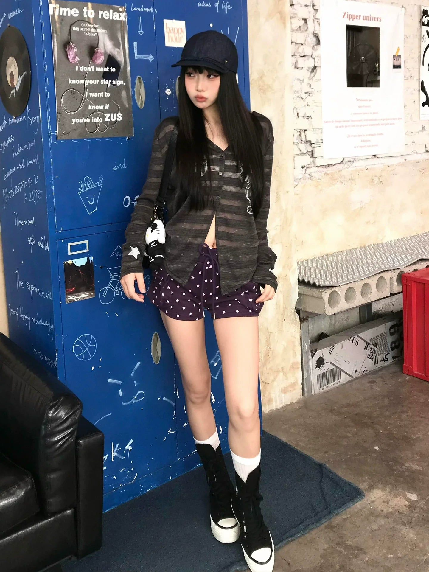 Y2K Light Subculture Striped Cardigan Musical Print Sun-Proof Top