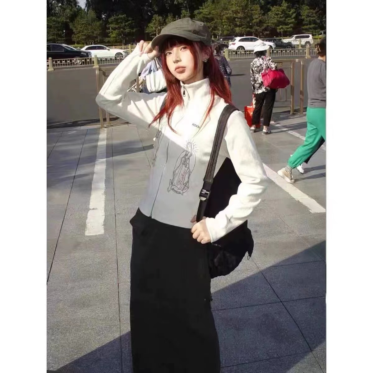 - Hoodie: Slim-fit hoodie with Y2K punk subculture and retro aesthetics, featuring a stand collar and bold prints—designed for autumn/winter to flatter the figure.